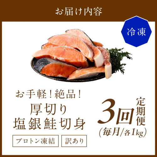 お手軽!絶品!厚切り 塩銀鮭切身 約1kg(プロトン凍結 訳あり 不揃い) 定期便 月1回×3ヵ月<わけあり銀鮭/ふぞろい銀鮭/分厚い銀鮭/冷凍銀鮭/規格外銀鮭/銀鮭小分け>