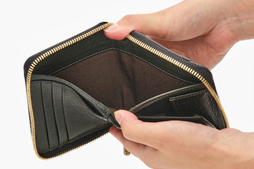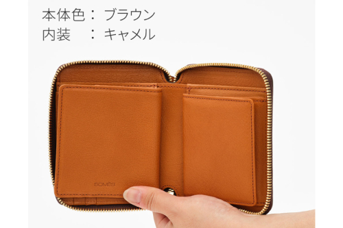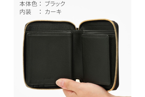 前作よりカード入れ・内ポケットを増やして、カードの収納力を見直した二つ折り財布。