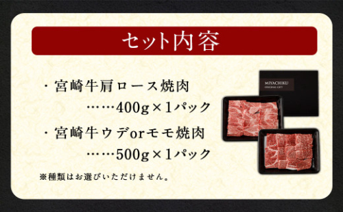 - <宮崎牛 焼肉 2種 (赤身霜降り)>2026年2月上旬より順次出荷 計約900g 肩ロース ウデorモモ 新生活応援 卒業祝い 就職祝い 入学 卒業 お花見 引越し
