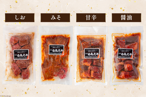 - 牛肉 日高見牛 味付け 一口ステーキ 赤身 4種セット (しお味 みそ味 甘辛味 醤油味) 計800g [亀山精肉店 宮城県 気仙沼市 20564736] 肉 にく ステーキ サイコロステーキ 牛 焼肉 焼き肉 味付き 冷凍 キャンプ BBQ アウトドア 国産牛 個包装 小分け