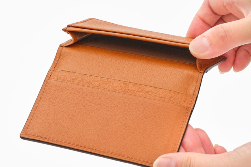 リニューアルで外ポケットを追加し、急な対応でもスムーズに名刺を出し入れできるように見直しました。