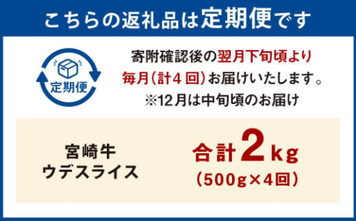 【4ヶ月定期便】<宮崎牛ウデスライス 500g(1パック:500g×4回)> お申込みの翌月下旬頃に第一回目発送(12月は中旬頃) 牛肉 お肉 肉 和牛 新生活応援 卒業祝い 就職祝い 入学 卒業 お花見 引越し