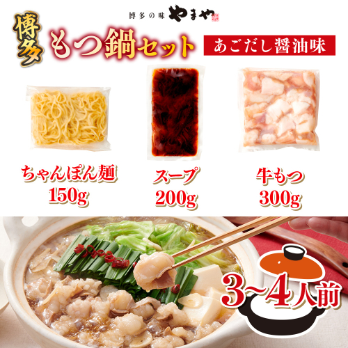 もつ鍋 やまや 博多もつ鍋 あごだし醤油味 3~4人前 ちゃんぽん麺付 [やまやコミュニケーションズ 福岡県 宇美町 um40azo860010] もつ鍋セット モツ鍋 国産 牛もつ 牛モツ 牛ホルモン