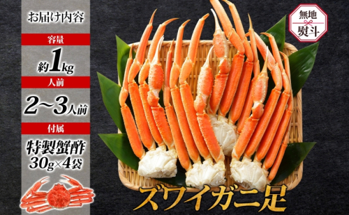 【無地熨斗】ズワイガニ足 1kg前後 約2-3人前 蟹酢付き【昆布塩加工 ボイル かに カニ ズワイガニ 脚 北国からの贈り物】 020C438-1