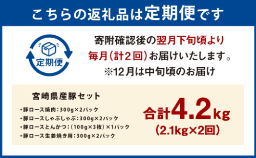 - 【2ヶ月定期便】<宮崎県産豚セット(計2.1kg×2回)> お申込みの翌月下旬頃に第一回目発送(12月は中旬頃) 豚肉 お肉 肉 新生活応援 卒業祝い 就職祝い 入学 卒業 お花見 引越し