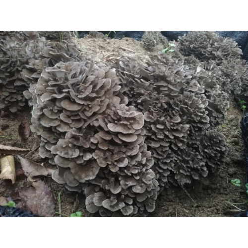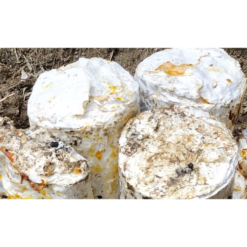京丹後の木を切り出し、マイタケの種菌(タネ)を植え、発生に十分な状態になるまで時間をかけて培養した原木マイタケほだ木になります。マイタケ菌のまん延したほだ木ですので、発生しやすいです。