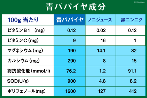 たとえば青パパイヤのパウダーについては、総抗酸化能がノニジュースの約60倍、