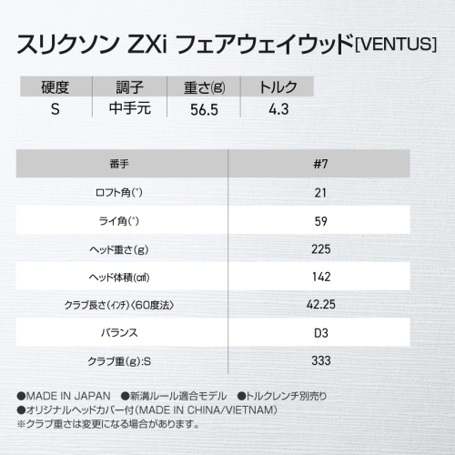 スリクソン ZXi フェアウェイウッド 【VENTUS/S/7】≪2024年モデル≫_DK-C711-7S