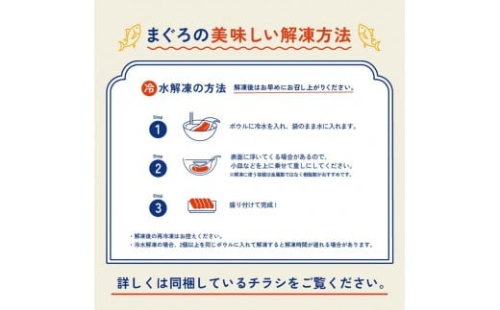 勝浦漁港で水揚げされ厳選した生まぐろを急速冷凍しました。 シーズン毎に旬のまぐろを使用している中落ち。 びんちょうまぐろ、きはだまぐろ、めばちまぐろ。どれが入っているかはお楽しみです。 ----- 内容量:80g×10パック 名称:冷凍まぐろ(生食用) 原材料:太平洋産生まぐろ ----- 【おすすめの解凍方法】 約10分〜15分、冷水に浸けておくだけで簡単に解凍できます。 商品全体が隠れるまで水に浸けることがポイントです。 【おいしいお召し上がり方】 おすすめの解凍方法で下準備をしまして、そのままお皿に盛ったり、丼にしたりして召し上がってください。 サイトではレシピもご紹介しております! ※北海道・沖縄・離島地域への配送はできません。 【お問合せ先】 事業者名:株式会社加治安 連絡先:0735-29-1005 関連キーワード:魚 お魚 さかな 食品 人気 おすすめ 送料無料