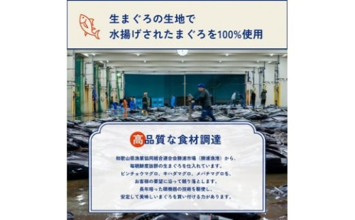 びんちょうまぐろ、きはだまぐろ、めばちまぐろ。どれが入っているかはお楽しみです。