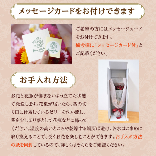・メッセージカードをお付けできます。ご希望の場合は備考欄にご記載ください。