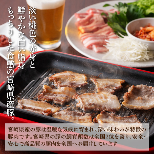 宮崎県産の豚は温暖な気候に育まれ、深い味わいが特徴の豚肉です。宮崎県の豚の飼育頭数は全国2位を誇り、安全・安心で高品質の豚肉を全国へお届けしています。淡い桃色のキメ細やかな赤身、鮮やかな白い脂身で肉質は弾力性があり、もっちりした食感を存分に味わって頂けます。 【地場産品基準】 4号:区域内で肥育される豚が、近隣の複数団体(日向市、西都市、高鍋町、川南町、都農町、美郷町)を管轄すると畜場(ミヤチク)でと畜されるため、流通構造上区域外と混在することが避けられない