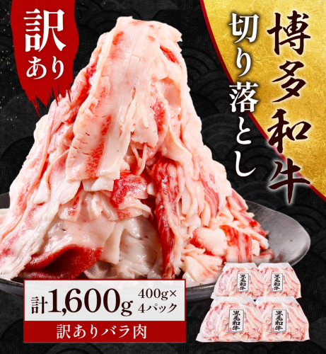 博多和牛バラ肉切り落とし 訳あり 1600g 400g×4 脂マシマシ MK002  1515399 - 福岡県篠栗町