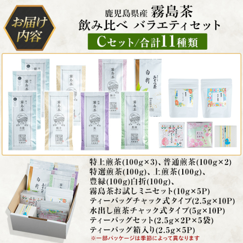 - C-064 鹿児島県産霧島茶飲み比べバラエティセット(Cセット・合計11種)【末重製茶】霧島市 日本茶 お茶 霧島茶 ティーバッグ お手軽 緑茶 茶葉 水出し茶 煎茶 茎茶 特上茶 特選煎茶 銘茶 詰め合わせ 詰合せ