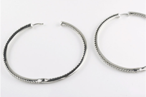 ダイヤモンドがフープの内側の正面から見える部分にも留まるデザインは