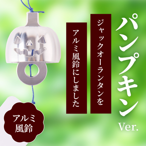 ハロウィンの飾り物として子どもにも人気のジャックオーランタン(パンプキン)を、アルミ風鈴にしました。