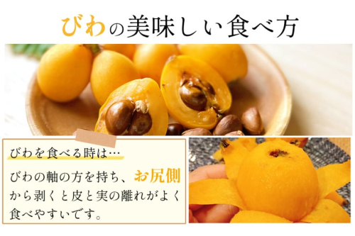 ハウスで1つ1つ丁寧に育てられたびわは、露地栽培のものよりジューシーで実が柔らかく上品な甘さが特徴です。