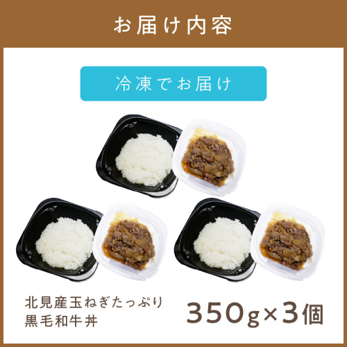 レンジで丼!北見産玉ねぎたっぷり黒毛和牛丼 3個 ( 弁当 どんぶり 丼 牛肉 黒毛和牛 冷凍 簡単調理 )【136-0024】