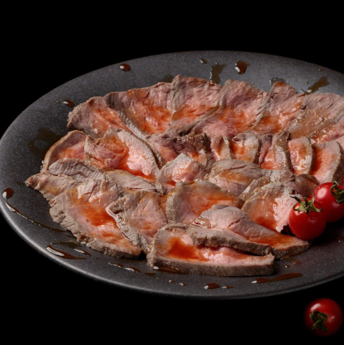 道産牛のモモ肉を原料として漬込み熟成したあと、調理加工しました。スライスの工夫次第で、味わいも微妙に違ってきます。