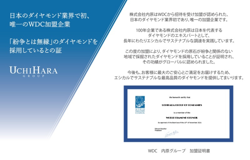 株式会社内原はWDCから招待を受け加盟が認められた、日本のダイヤモンド業界初であり、唯一の加盟企業です。