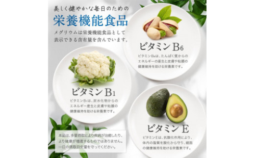 メグリウムはビタミンB1、ビタミンB6、ビタミンEの栄養機能食品です。