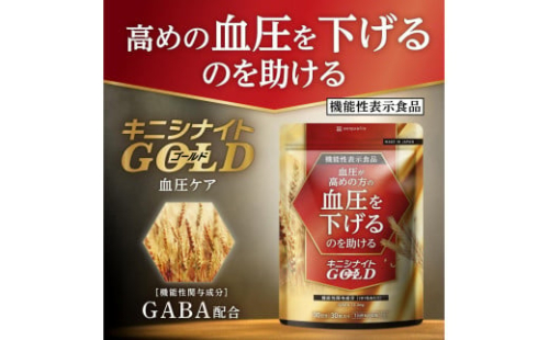 健康診断の数値判定が気になりだしたら「キニシナイト」 健康寿命を意識したセルメディケーションサプリ「キニシナイト」から血圧ケアサプリメントが登場。 GABA(ギャバ)のチカラで、血圧が高めの方の血圧を下げるのを助ける、消費者庁に登録された機能性表示食品のサプリメント(届出番号:H1290) さらに、ナットウキナーゼやサーディンペプチド、胡麻エキスなど、気になる血圧をケアするサポート成分もしっかり配合。 自覚症状のない、血圧高めの状態。でも放っておくと大変な事になるかも。 あなたのために、そして家族や大切な人に負担をかけないためにも、早めのケアを始めましょう!