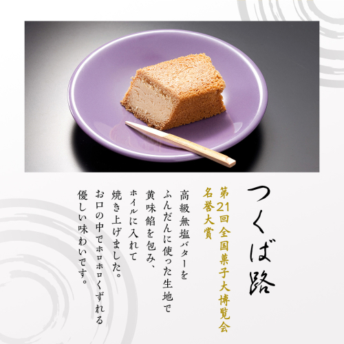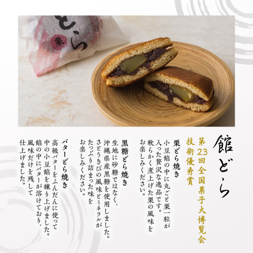 皮と餡の味が楽しめる「館最中」、香り豊かでこくのあるバターを使った洋風菓子「つくば路」、お子様からお年を召した方まで皆さまがお好きな「どら焼き」、