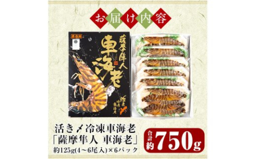 活き〆冷凍車海老「薩摩隼人車海老」約125g(4~6尾入)6パック