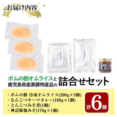 • C0-087 ポムの樹オムライスと鹿児島県産黒豚特産品の詰め合わせセット(4種計6個)【富士食品】