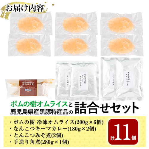 - E0-002 ポムの樹オムライスと鹿児島県産黒豚特産品の詰め合わせセット(4種計11個)【富士食品】