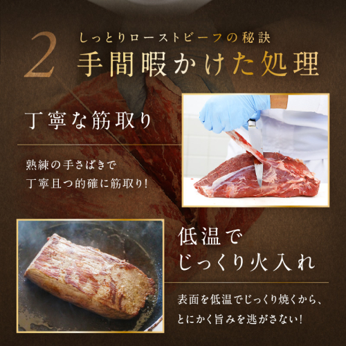 お肉専門レストランのシェフが厳選した国産黒毛和牛のモモ肉を使用した本格ローストビーフを便利な小分け包装でお届けします。