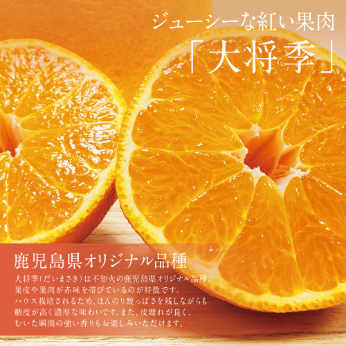 大将季(だいまさき)は、不知火の鹿児島県オリジナル品種で、果皮や果肉が赤味を帯びているのが特徴です。