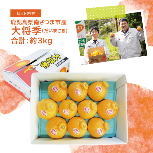 【2月~3月発送】鹿児島県産 不知火「大将季」(だいまさき)約3kg 果物 フルーツ 柑橘 みかん しらぬい ブランド 常温 JA 南さつま市