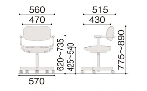 【サイズ】W560(脚:570mm)×D515×H775~890mm(SH425~540mm)