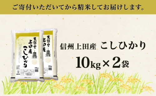 令和7年産 長野県 信州 上田市産 こしひかり 10kg×2袋 計20kg 精米 白米 ブランド米 銘柄米 コシヒカリ ご飯 ライス お弁当 おにぎり 主食 国産 日本産 和食 お取り寄せ