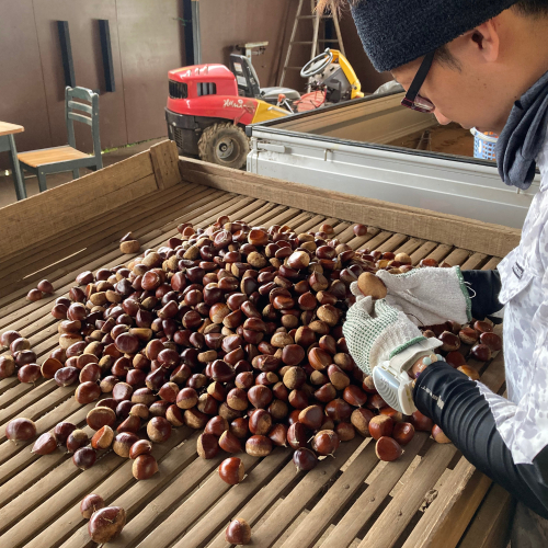 祖父が大切に育ててきた栗畑を引き継ぎ、地域一番美味しいと言われてきた祖父の栗に恥じぬよう一年間大切に育てています。