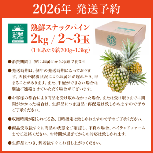 2026年 先行予約【手でちぎって食べる楽しさ】沖縄 西表島 熟鮮スナックパイン2kg(2~3玉)