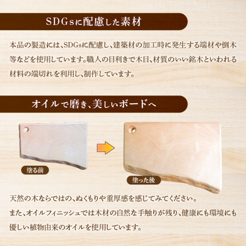 天然木の特徴を活かしたシンプルなカッティングボードです。
