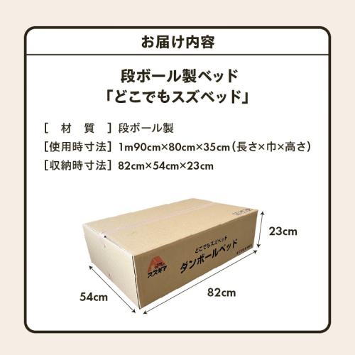 - 【3分で組立可能】段ボール製ベッド「どこでもスズベッド」 簡易 被災時 緊急時 防災グッズ 防災ベッド 非常用 介護 SDGs 環境にやさしい ダンボール H160-009
