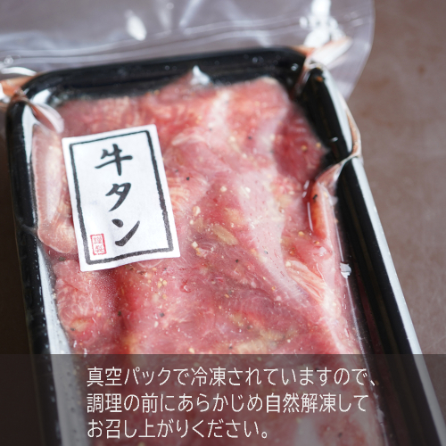 焼肉屋さんで一般的に販売しておられる「タン中」部分を約2~3mmサイズにスライスをしております。