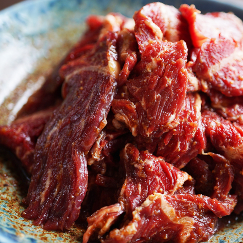 原材料:肉(ハラミ/豪州)、醤油、にんにく、砂糖、玉ねぎ、酵母エキス、調味料、酸味料、酸化防止剤、香辛料抽出物 (一部に小麦、大豆を含む)