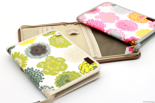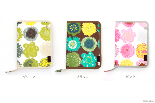 ポーチェの『マルチケース(ファスナータイプ) 北欧ポップ』は、北欧テイストな花を丸いモチーフにし、シンプルに配置したデザインの手帳ケースです。
