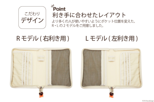 より多くの人が使いやすいようにポケット位置を変えた、R・Lの2モデルをご用意しました。