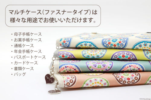 マルチケース(ファスナータイプ)は、母子手帳ケース、お薬手帳ケース、通帳ケース、年金手帳ケース、パスポートケース、カードケース、書類ケース、バッグなど様々な用途でお使いいただけます。