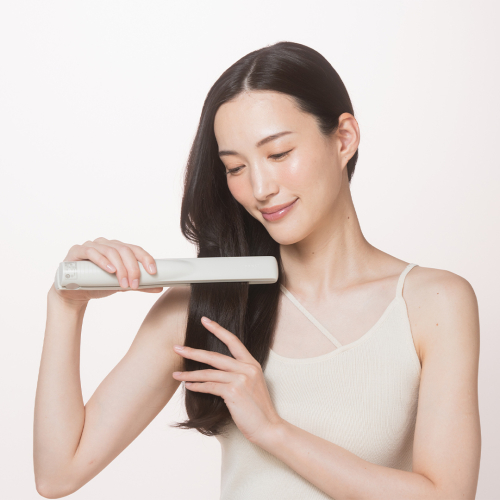 髪にトリートメント剤をつけて本機で挟むことで、トリートメント剤の浸透を高め、うるおいとツヤのある髪に導きます。