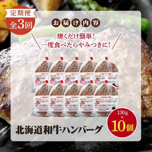 【定期便:全3回】 阿部精肉店の味付き和牛ハンバーグ 130g×10個 | オンライン 申請 ふるさと納税 北海道 恵庭 手作り 手作りハンバーグ ハンバーグ 和牛 和牛ハンバーグ 10個 簡単調理 時短 定期便 3ヶ月 恵庭市