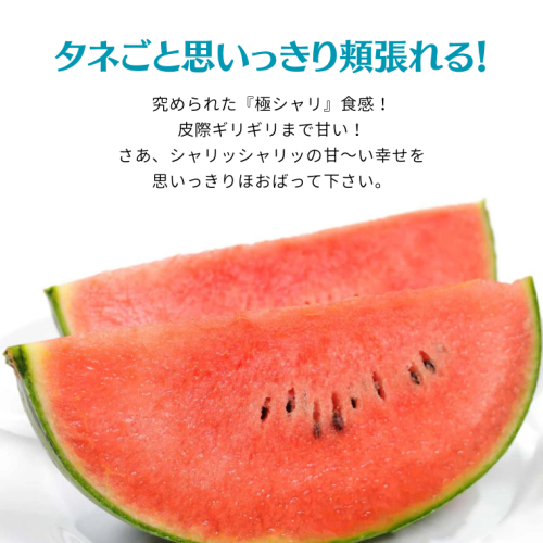 JA北つくばこだま西瓜部会は、第48回日本農業賞(集団組織の部)特別賞を受賞しており、高い評価を獲得しています。 タネがとても小さく、タネごと気にならずに食べられるこだますいか。 タネごと思いっきり頬張れる! 究められた『極シャリ』食感! 皮際ギリギリまで甘い! さあ、シャリッシャリッの甘~い幸せを思いっきりほおばって下さい。 【注意事項】 商品は配送の都合上、ビニール袋に入っております。到着後すぐに箱から取り出し、ビニール袋を外して直射日光の当たらない涼しい場所で保管下さい。すいかは鮮度が命です。到着後、早めにお召し上がり下さい。 冷蔵庫で1~2時間程度冷やして食べるのがオススメです。 ※お受け取り後は、すぐに状態をご確認ください。※ 万全を期して返礼品をお届けしていますが、万が一、不備等があった場合は返礼品受け取り時に、写真(画像)を添付のうえ電子メールにてご連絡ください。 日数が経ったものに関しましては対応いたしかねますので、ご了承ください。 また、不備等があった返礼品は食べたり、飲んだり、捨てたりせず、対応が決まるまで保管をお願いします。保管されてない場合、代替品での対応等が難しい場合がございます。 ご連絡先:sakuragawa@furusato-g.com 【保存方法】 高温・多湿・直射日光を避け、涼しい場所で保管して下さい。 【事業者】 JA北つくばファーマーズマーケット 地場産品類型:1 類型該当理由:市内で生産されたもの