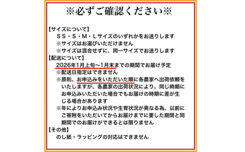 なお、サイズは混合せず同一のサイズのみでお送りいたします。