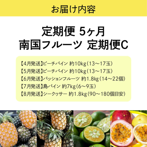 - 2026年 先行予約 定期便 5ヶ月 南国フルーツ 定期便C パイン シークヮーサー パッションフルーツ 計4種類 果物 フルーツ 5回 お楽しみ