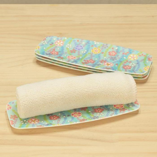 【華やかな装飾の友禅和紙を使った、食洗機対応のおしぼりトレー】